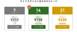 | 配達プラン | 1食当たりの料金 | 合計金額 | 初回割引後料金 |