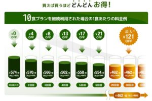 ナッシュは注文数が多いほど1食あたりの料金が割安になります。